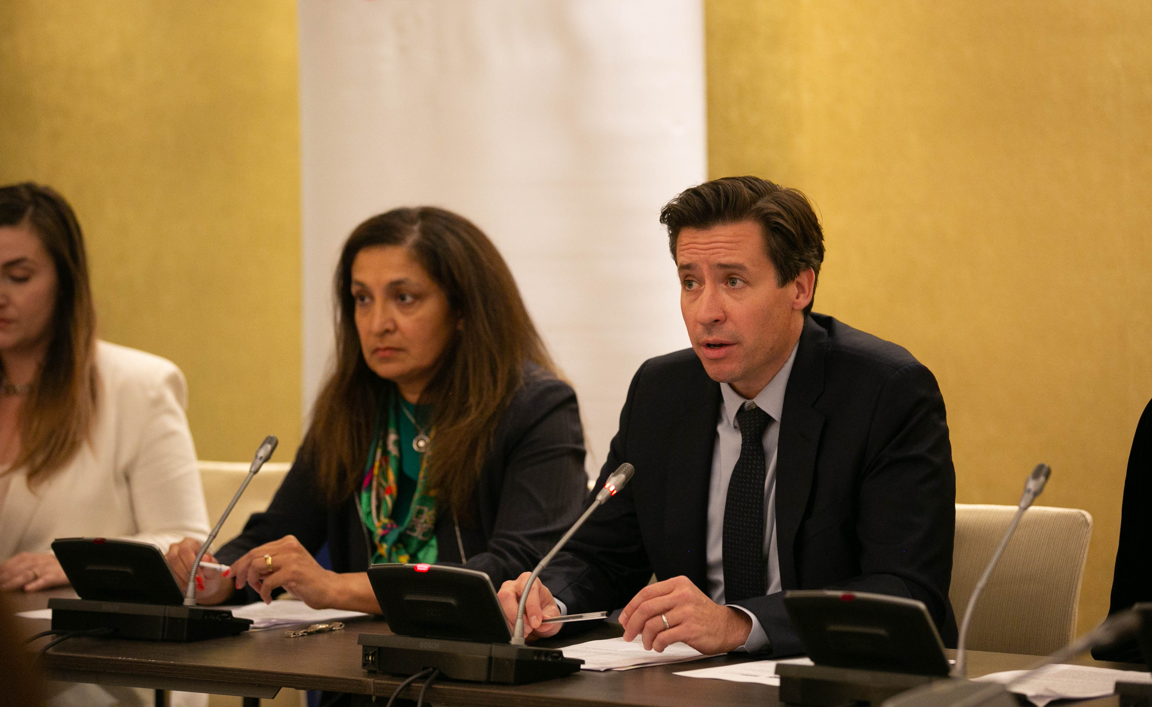 Uzra Zeya, United States Under Secretary of State, and Valiant Richey, OSCE Special Representative and Co-ordinator for Combating Trafficking in Human Beings, speaking at the side event on protecting Ukrainian women and children from risks of sexual exploitation, Warsaw Human Dimension Conference, 6 October 2022.