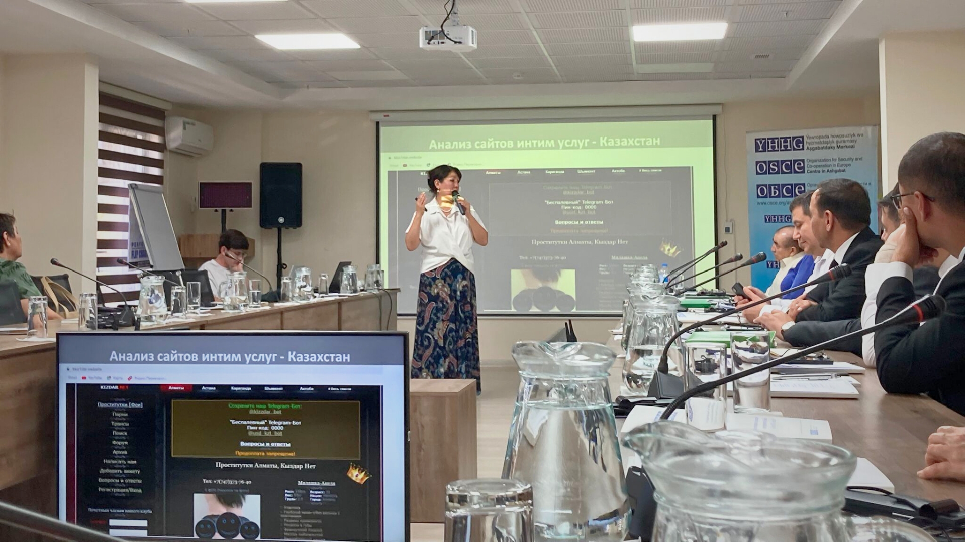 Zhanara Seytayeva, expert of Kazakhstan’s Prosecutor General Office, delivering a presentation on Kazakhstan’s Mapping of Online Platforms with High Risks of Human Trafficking, Ashgabat, 29 May 2025