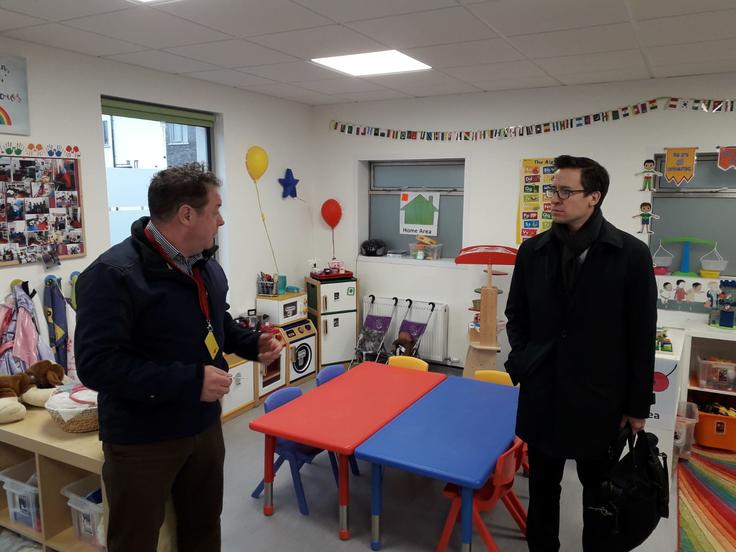 Valiant Richey (r), OSCE Special Representative and Co-ordinator for Combating Trafficking in Human Beings, visiting the Balseskin Reception Centre (Ballymun) for asylum seekers, which also accommodates trafficked persons, during his Follow-up visit to Ireland, Dublin, 20 February 2020.